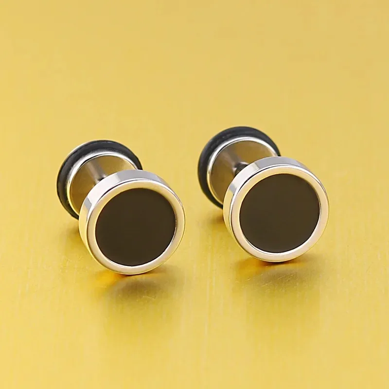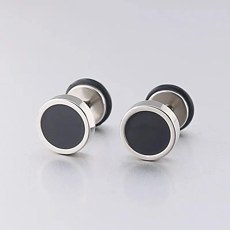2-piece men’s punk-style stud earrings made from durable stainless steel with a round design and screw-back closure. Perfect for everyday fashion or edgy streetwear style.